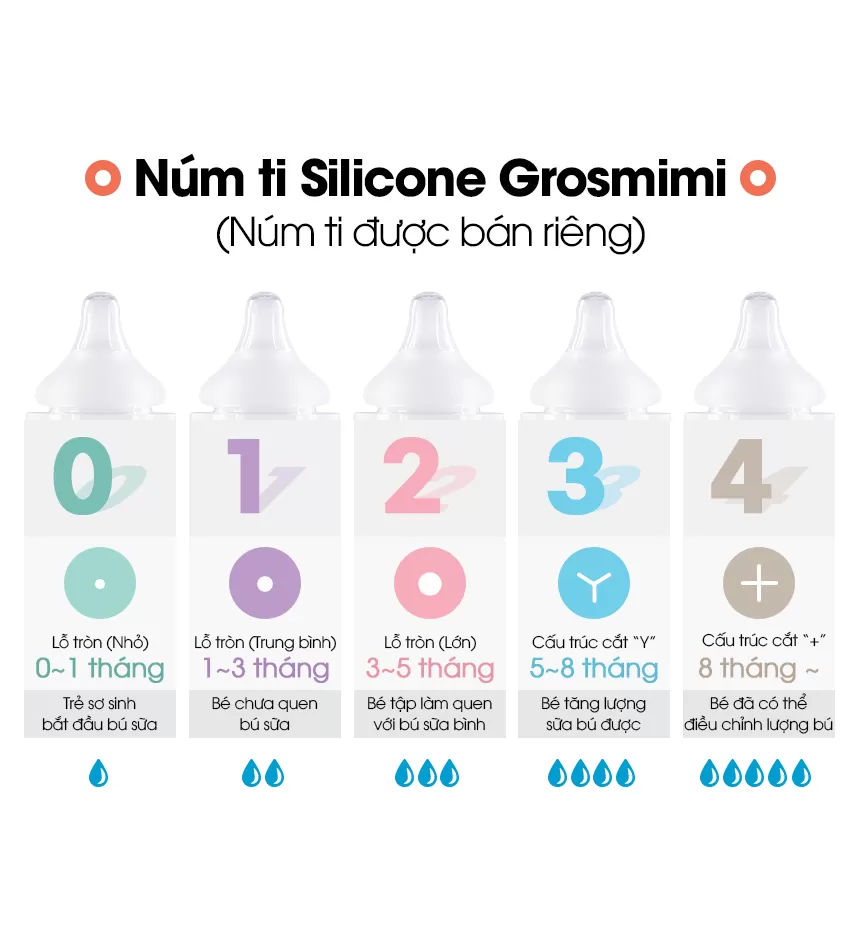 - Thiết kế thông minh: Núm ti mô phỏng ti mẹ, độ bền đàn hồi cao, cho bé thoải mái bú mút.